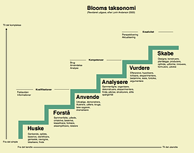 Blooms taksonomi angiver en klassi-ficering af forskellige typer af kvalifi-kationer og kompetencer. Modellen findes efterhånden i mange varianter. Vores model tager udgangspunkt i den reviderede udgave fra 2000, udformet af Lorin Anderson.